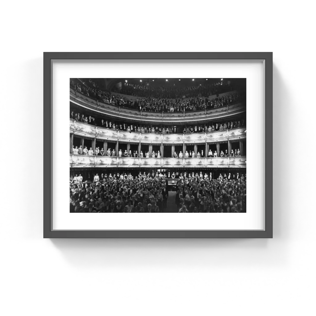 Idéale pour divers décors, cette photographie vintage apporte une touche de sophistication historique et une touche artistique à tout espace. Dans les intérieurs résidentiels, elle sublimera les salons, les salles de cinéma ou les bureaux, attirant les amateurs d'art et de culture classiques. Dans les environnements commerciaux, tels que les salles de spectacle, les théâtres ou les bureaux haut de gamme, cette œuvre d'art constitue un point focal saisissant qui rehausse l'ambiance et témoigne d'un engagement envers le patrimoine culturel. Les lieux d'accueil, comme les halls d'hôtel, les salons et les restaurants gastronomiques, bénéficient de l'atmosphère élégante et intemporelle de cette image, offrant aux clients un aperçu du passé.