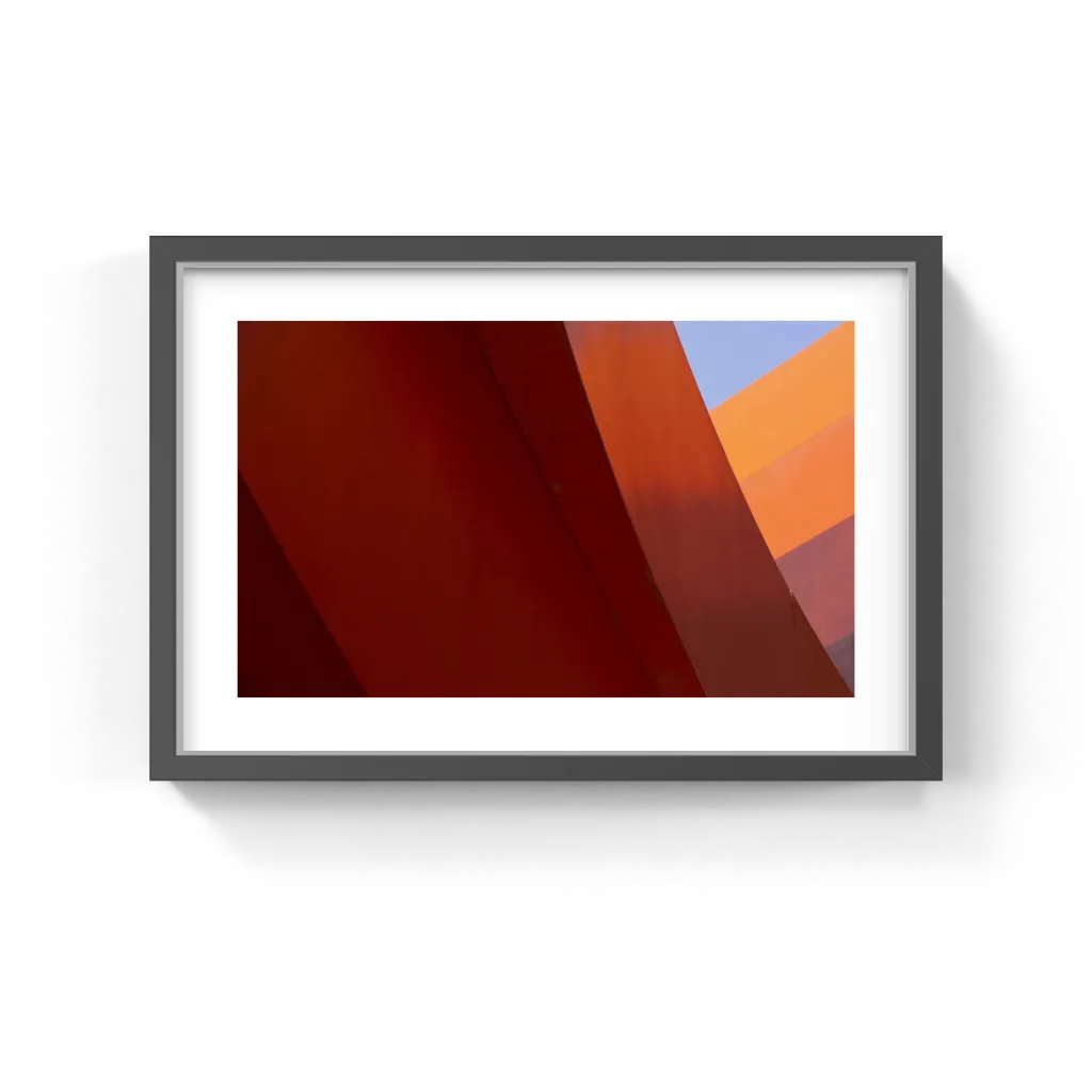 The photograph transforms solid structures into a play of line, light, and shadow. Its minimalist precision and vibrant palette make it ideal for modern interiors, hospitality environments, and corporate spaces seeking an artwork that conveys both strength and harmony.