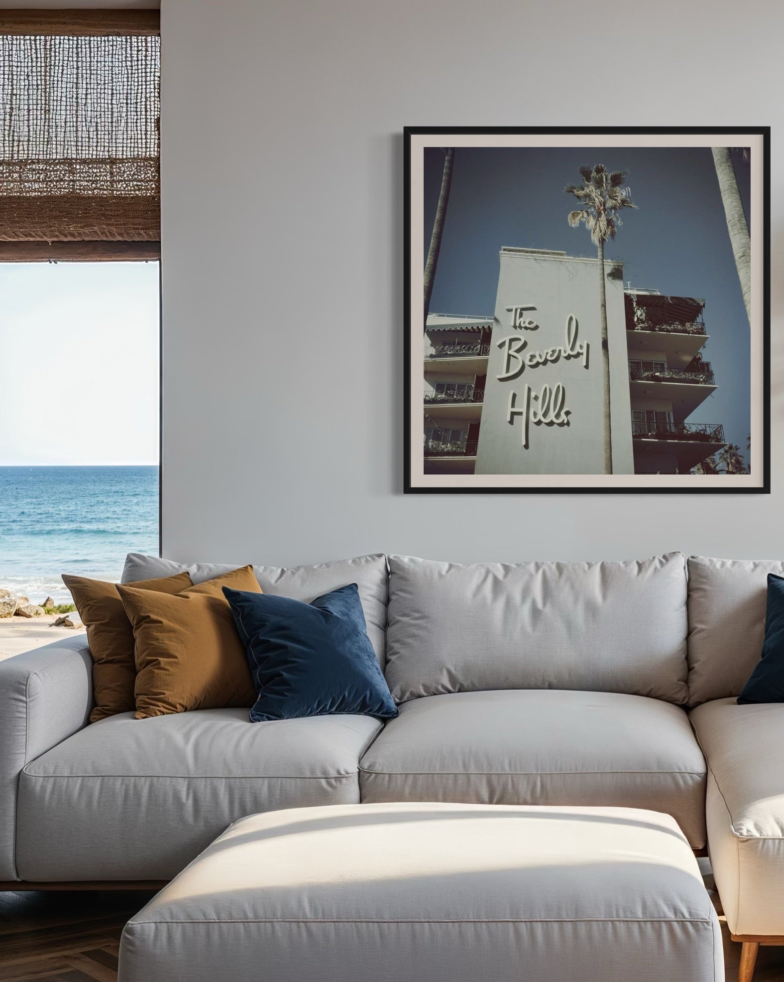 The Beverly Hills Hotel by Slim Aarons, sourced from the Getty Images Gallery. This iconic photograph captures the legendary Pink Palace in the 1950s, framed by towering palms and vintage automobiles—a cinematic glimpse into mid-century glamour. Ideal for hospitality designers, interior design projects, and collectors of fine art photography, this print elevates spaces with history, character, and timeless California style. Available exclusively through The Picturalist with bespoke framing options, this piece is a statement of sophistication for hotels, offices, real estate staging, and private residences.